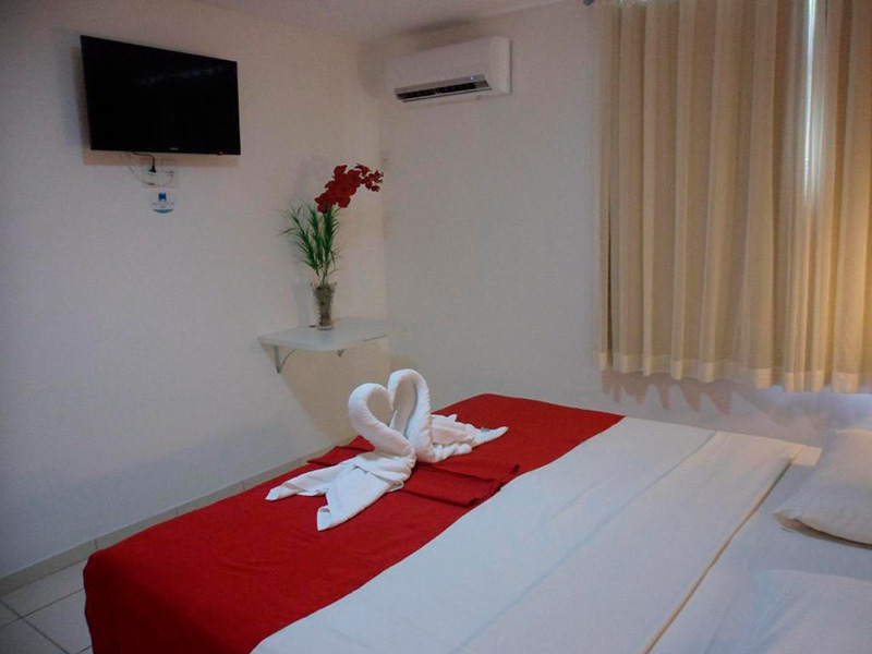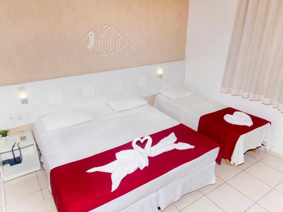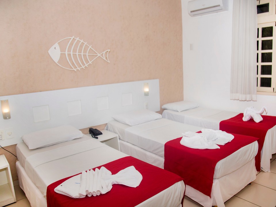Hospede-se em quarto elegante, Com cama de casal + uma de solteiro ou três camas de solteiro, internet Wi-Fi de alta velocidade, excelente localização, próximo de padarias, bares, restaurantes, super mercados.